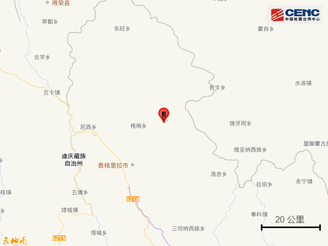 新京报讯 据中国地震台网负责测定,9月1日4时55分在云南迪庆州香格里拉市发生3.1级地震,震源深度10公里,震中位于北纬28.07度,东经99.91度。